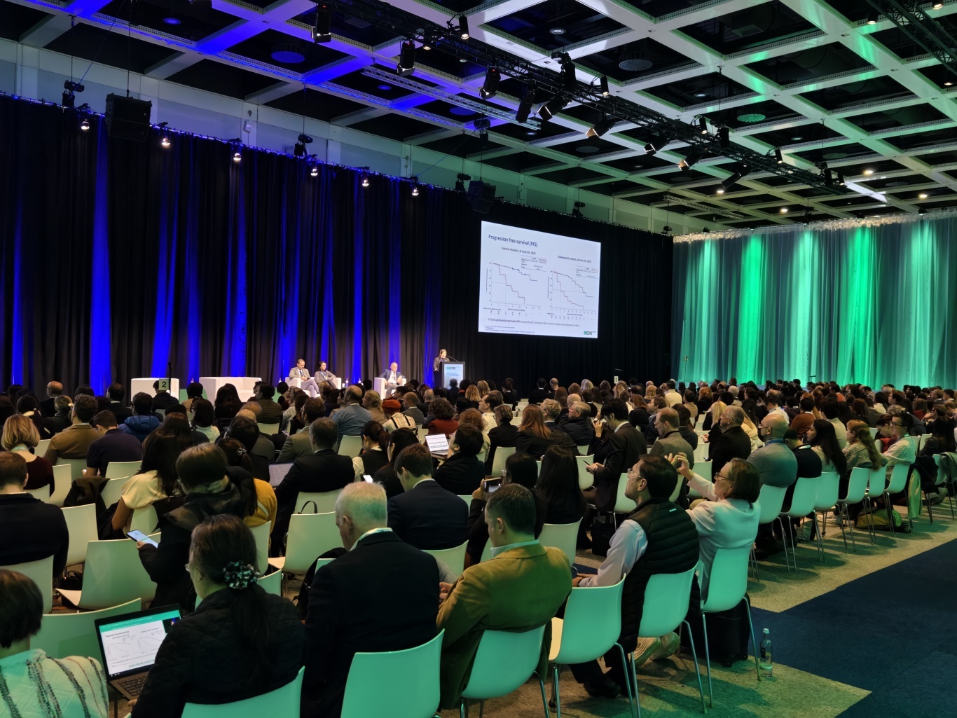 ▲中国人民解放军总医院徐建明教授团队 刘容锐教授ESMO现场报告