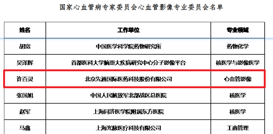 近日,国家心血管病专家委员会心血管影像专业委员会(以下简称影像专委会)正式成立。该委员会由胡盛寿院士等专家发起、王振常院士担任首届主任委员,汇聚了全国心血管影像领域百名顶尖专家,其成立标志着我国在该领域的资源整合与协同创新进入了全新阶段。先通医药作为国内创新放射性药物领跑企业,荣誉入选影像专委会首届委员单位。此次入选,体现了国家级专业学术组织对公司在心血管影像领域研发实力与创新贡献的高度认可,也将激励公司更深入参与国家层面行业协同与科研攻关。
